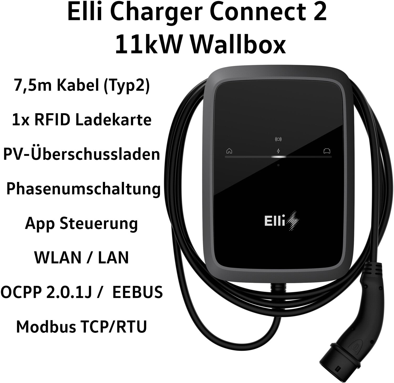 Elli Charger Connect 2 – 11 kW, 7,5m Typ-2 Kabel, WLAN/LAN, RFID, PV-Überschussladen