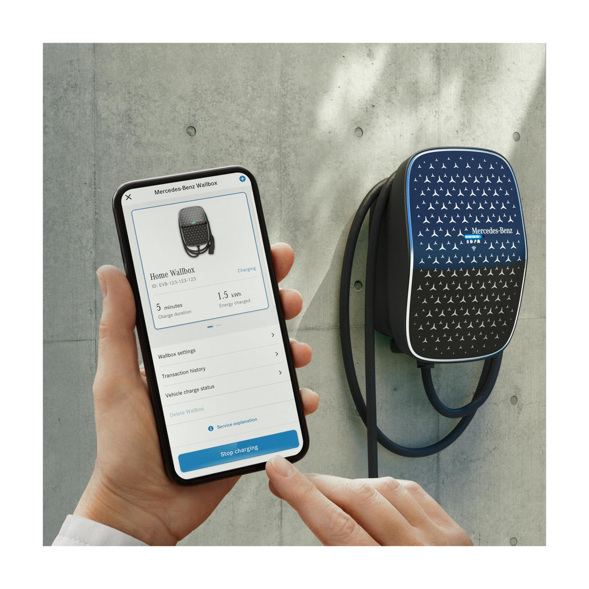 Die Mercedes-Benz Wallbox A0009063412 ermöglicht eine flexible Ladeleistung bis zu 22 kW bei 3-phasigem Anschluss und ist mit allen gängigen Elektro- und Plug-in-Hybridfahrzeugen mit Typ-2-Anschluss kompatibel. Dank fest integriertem 6 m Kabel und RFID-Zugangsschutz ist das Laden komfortabel und sicher. Die Verbindung zur Mercedes me App erlaubt Ladeüberwachung, Abrechnungsdaten und Fernsteuerung. Das robuste Gehäuse ist IP54- und IK10-zertifiziert und damit wetterfest und stoßfest.