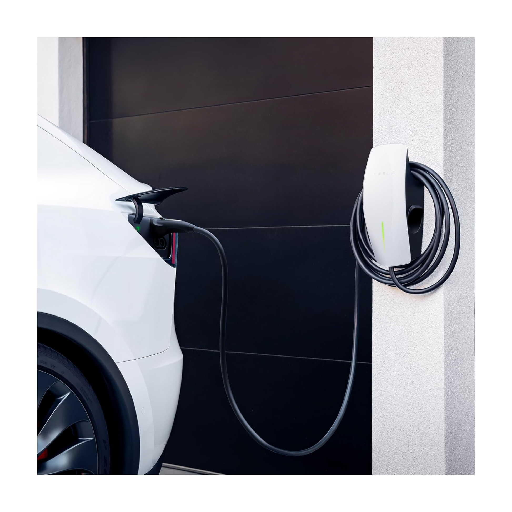Die Wallbox erkennt angeschlossene Fahrzeuge automatisch und startet den Ladevorgang. Über die Tesla App lassen sich Statusdaten einsehen, Ladevorgänge starten/stoppen und Firmware-Updates empfangen. Für Mehrfachinstallationen kann die Ladeleistung dynamisch verteilt werden. Eine integrierte Kabelaufhängung sorgt für Ordnung und einfache Handhabung.